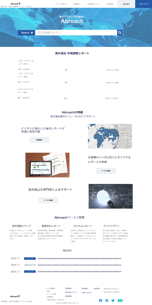 ①ターゲット:海外進出に関する市場調査等のレポートを必要としている企業・個人事業主