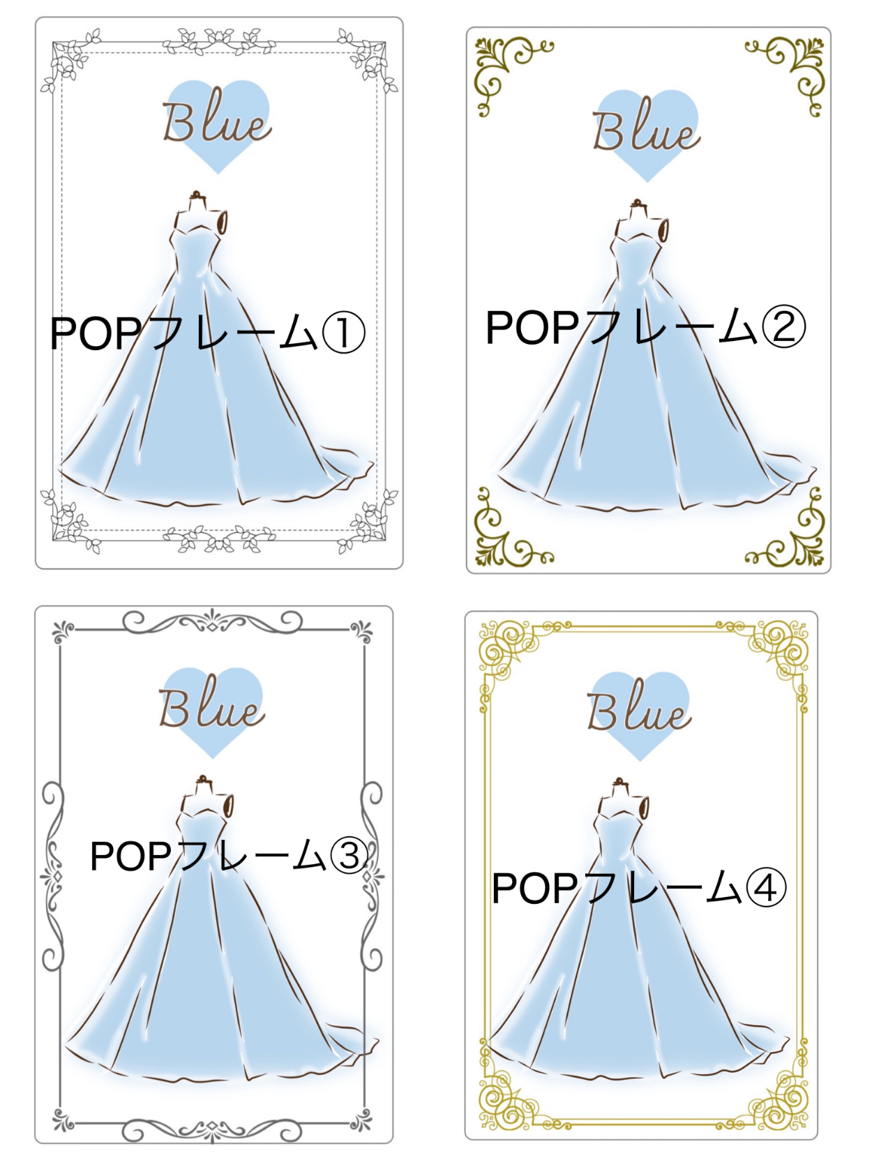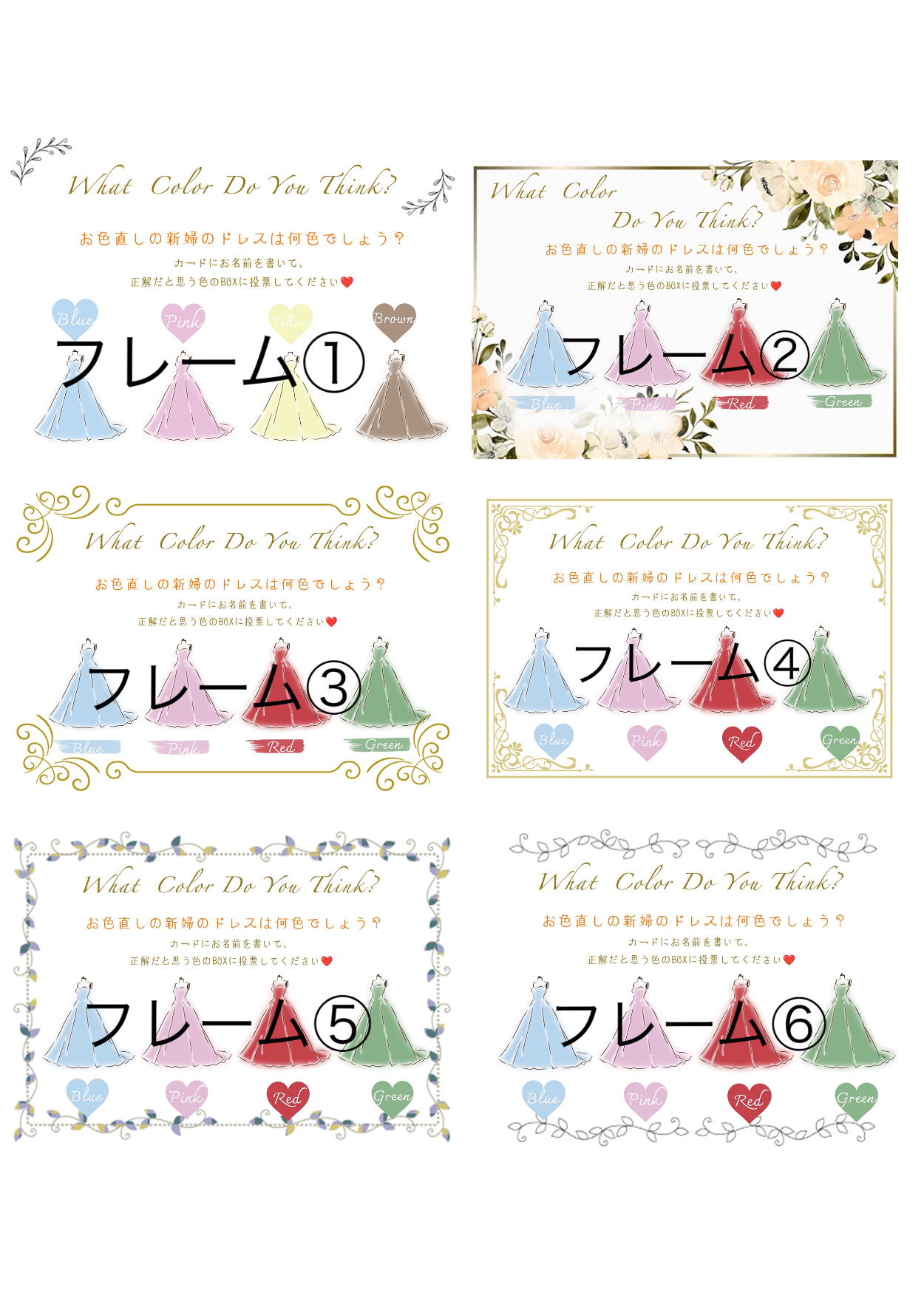 ・メインビジュアル・POP・投票用紙カラー・ドレスカラー名の背景装飾は複数のフレームを用意し、顧客の好みのデザインを選択できるようにした点