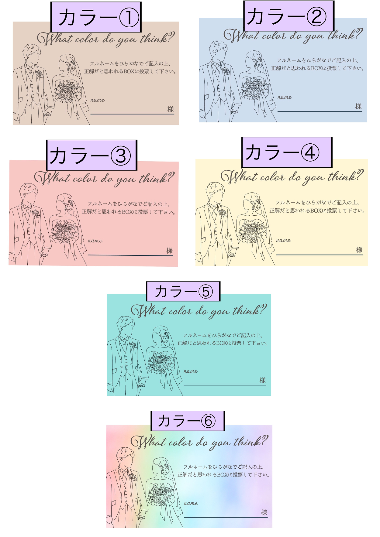 ・結婚式でカラードレスの色当てクイズを行いたい方