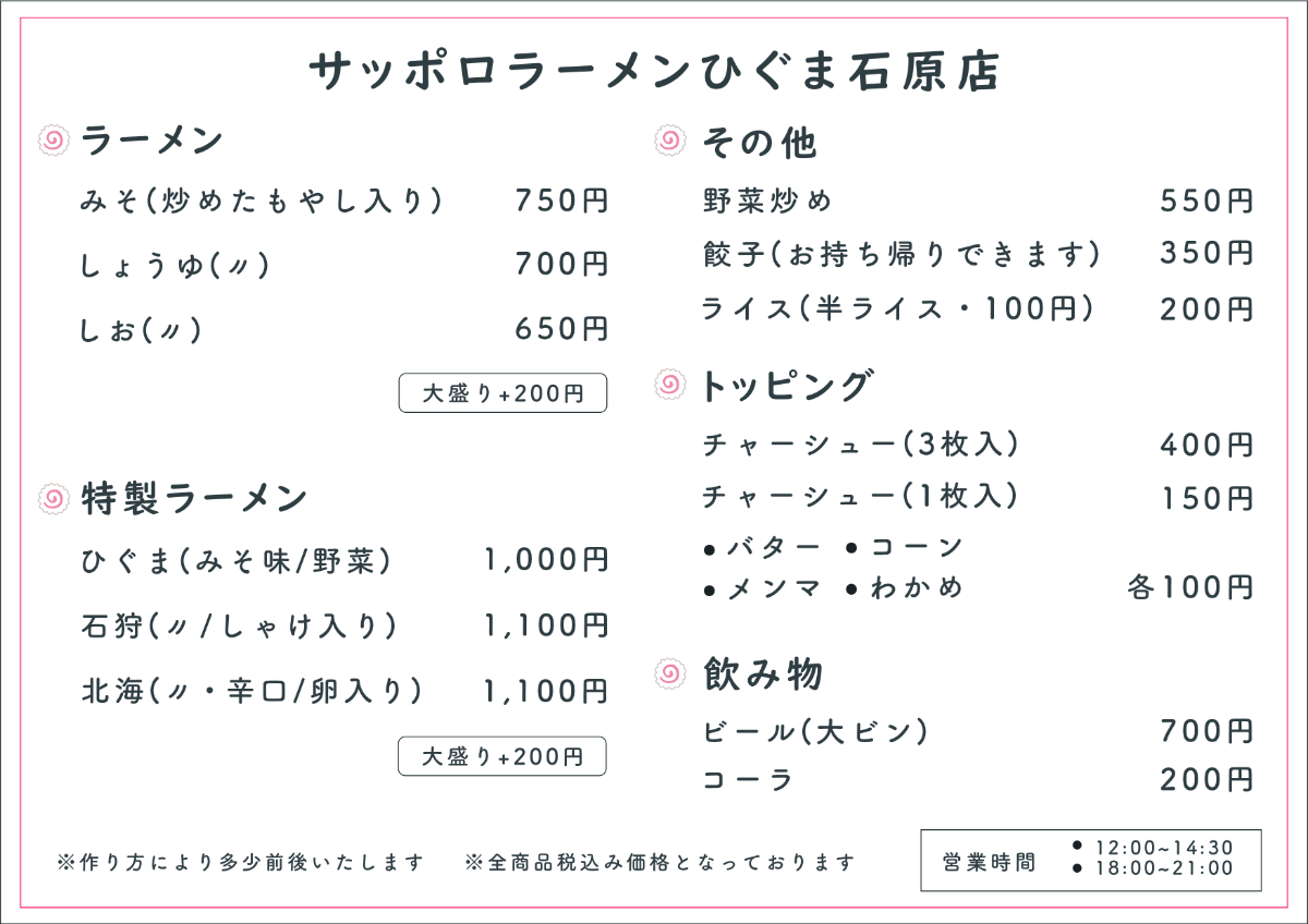 ・なるとのイラストを使用しアクセントを出しつつ見やすいシンプルなデザインを心がけ使用する色はラーメン店のイメージに合う赤色と黒色の2色におさえました。