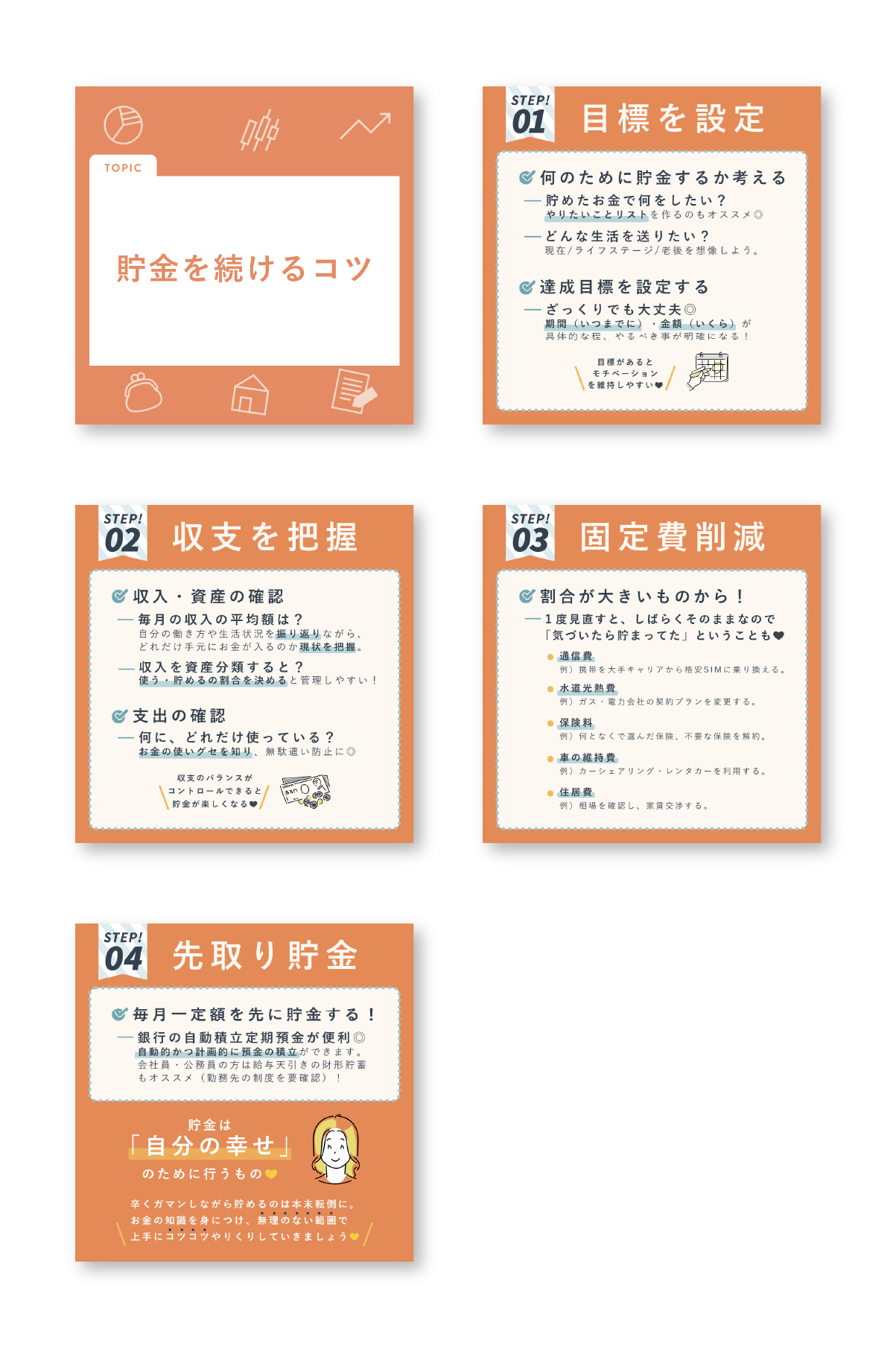 ・「お金」という固めのTOPICですが、見出しにストライプを使ったりイラストを使用するなどあしらいを工夫しPOPさを加えることで、気軽に読んでもらいやすくしました。