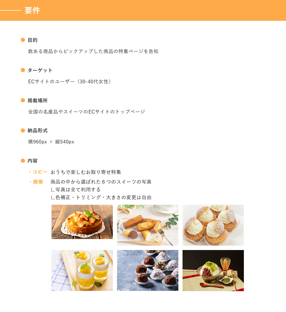 ・スイーツの写真を大きく配置することで、お取り寄せ特集に興味を持ってもらえるようにしました。