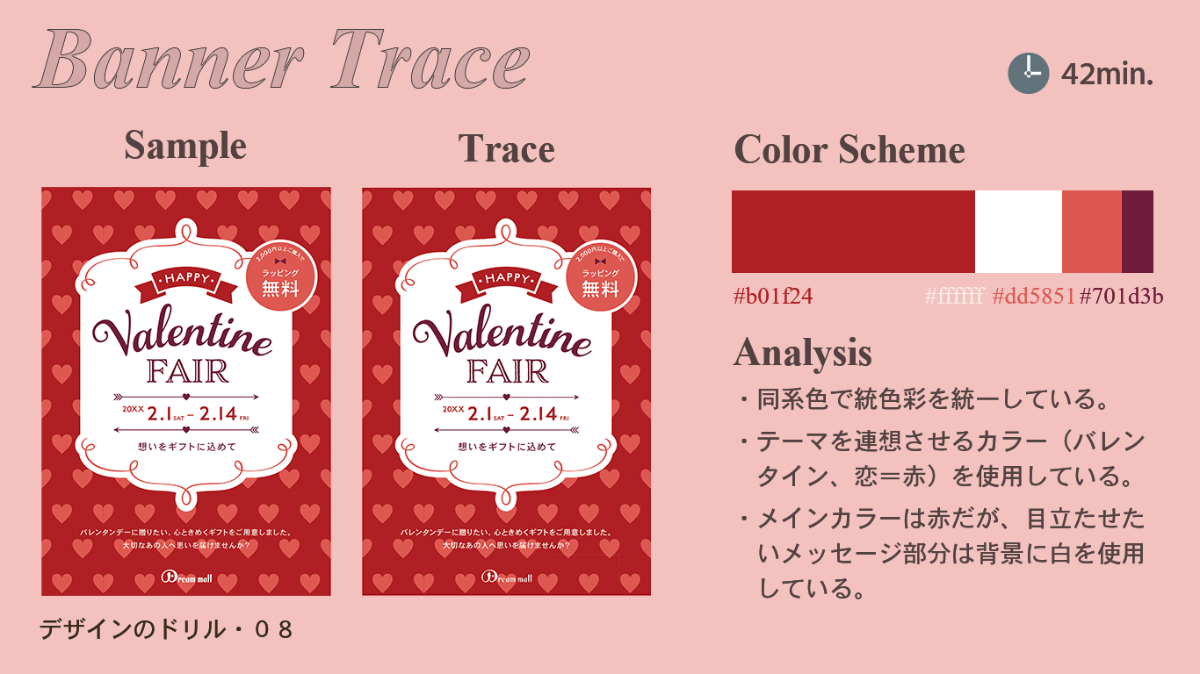 ・基本的には左右対称なデザインだが、目立たせたい”ラッピング無料”の部分だけ非対称にしている。