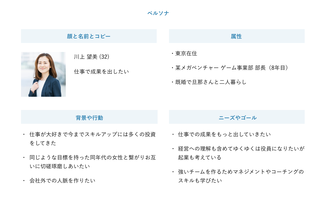 トンマナ:下記ペルソナに沿って制作すること