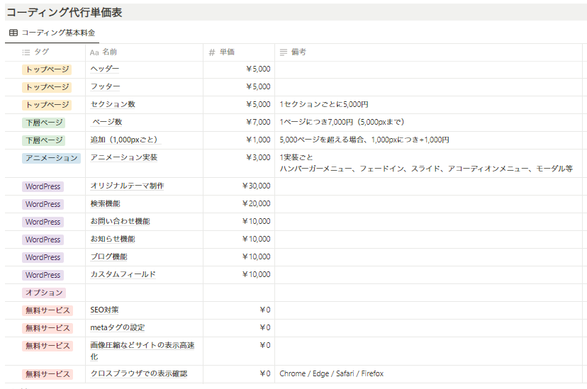 コーディング料金表