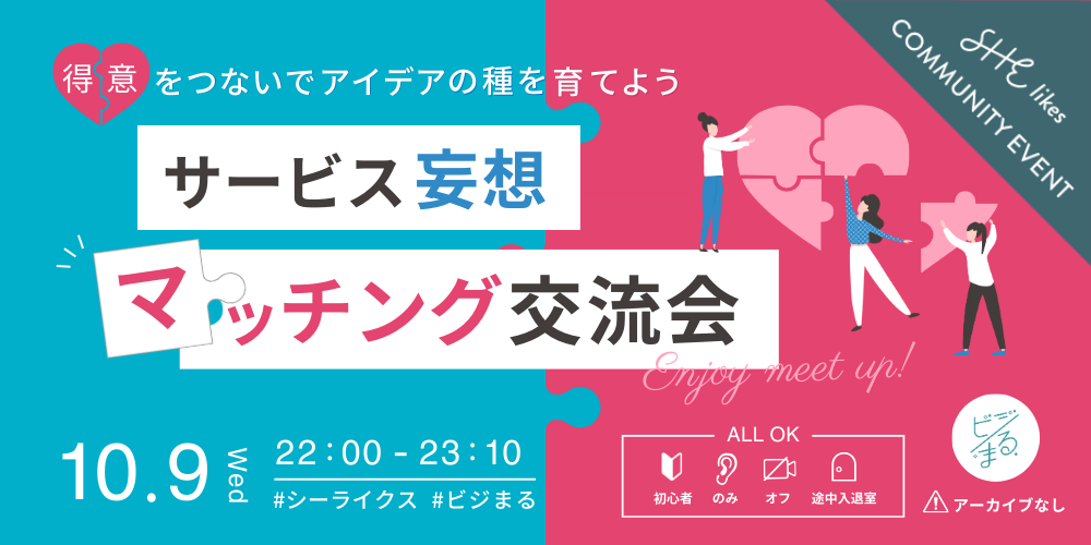 SHE株式会社様の運営するキャリアスクール「SHElikes」の12期ビジネス起業コミュニティ10月イベントバナーを制作しました。【制作時間:情報収集15分・制作1.5時間/使用ツール:Canva/illustrator】
