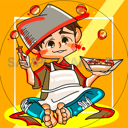ご依頼内容「料理が得意でたこ焼きをもった温かみのある男性のイラスト」
