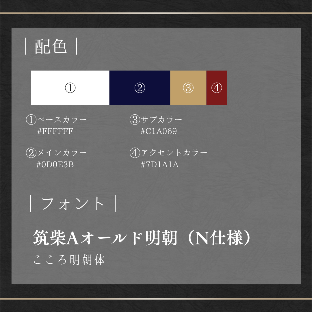 メインカラーで落ち着いた雰囲気の中に、サブカラーを少しずつ配色することで高級感のある印象をイメージしてデザインしました。