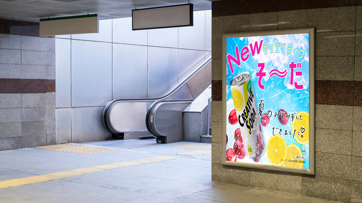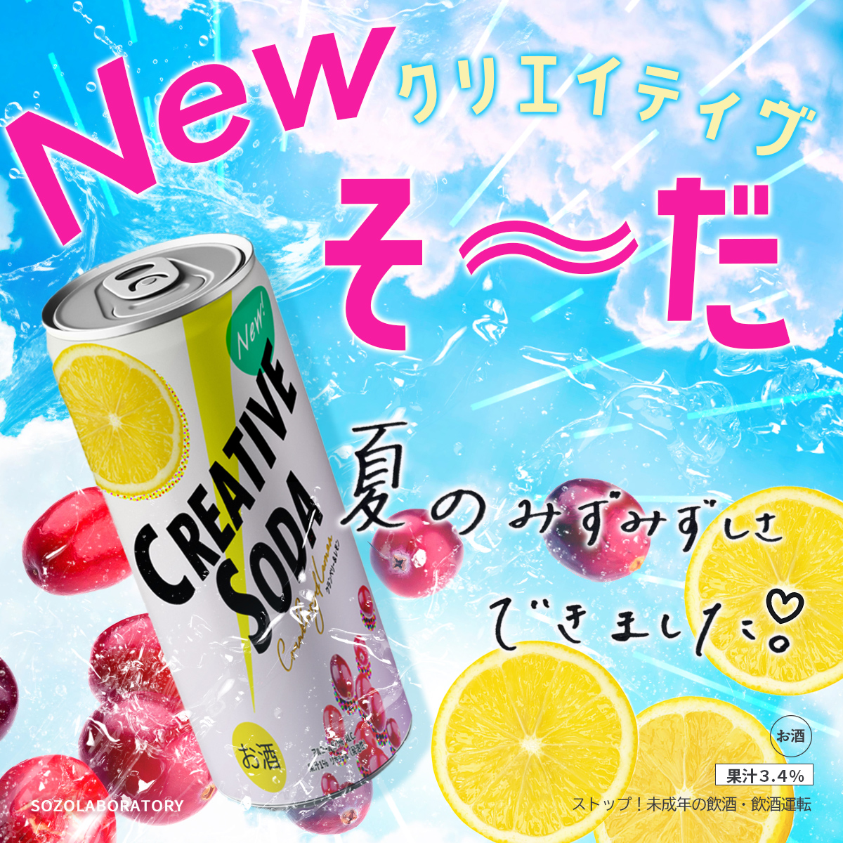 ・「NEWクリエリティブソーダ」、キャッチコピー、会社名はマスト