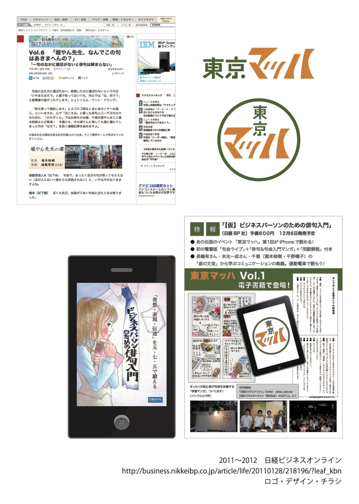 2011-2012 日経ビジネスオンライン 俳句の記事連載でロゴを作成し 好評だったので、イベント用Tシャツにもなりました。