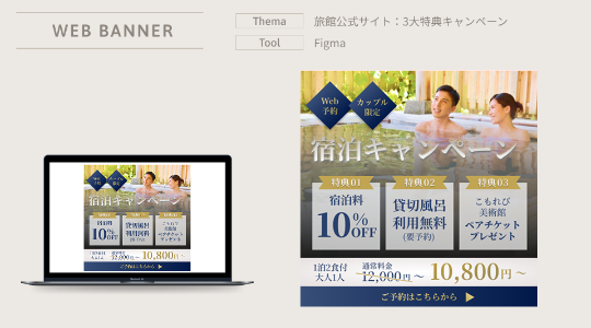 クリスマスケーキの認知拡大と予約促進を目的とした、Instagram用の広告バナーを制作。ホームパーティーを楽しみたい家族やカップルに向けた、楽しげなデザインにしました。