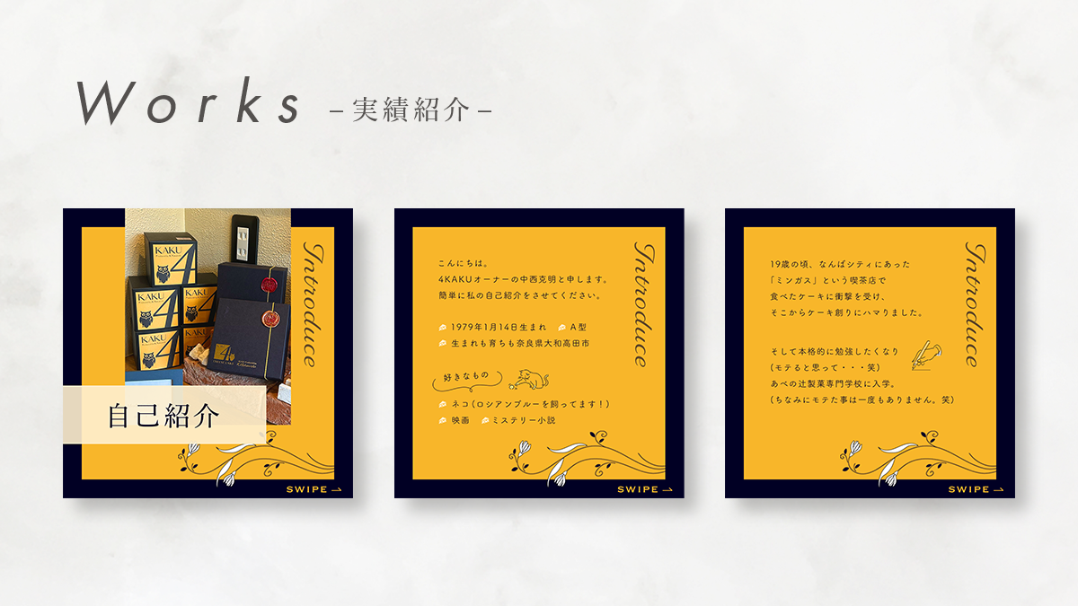 「4KAKU produced by K.Nakanishi」様 オーナーの中西様よりInstagramの固定投稿用バナー制作のご依頼をいただきました。
