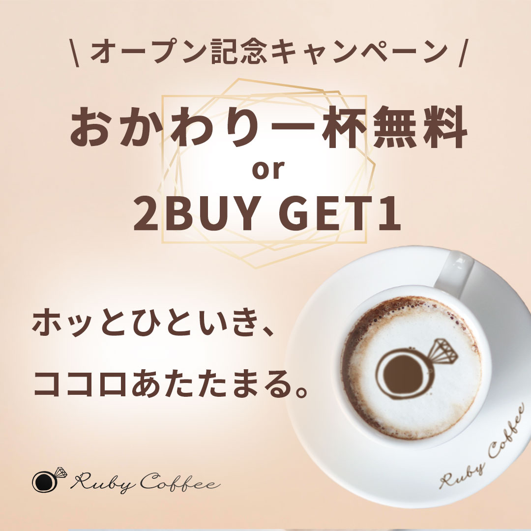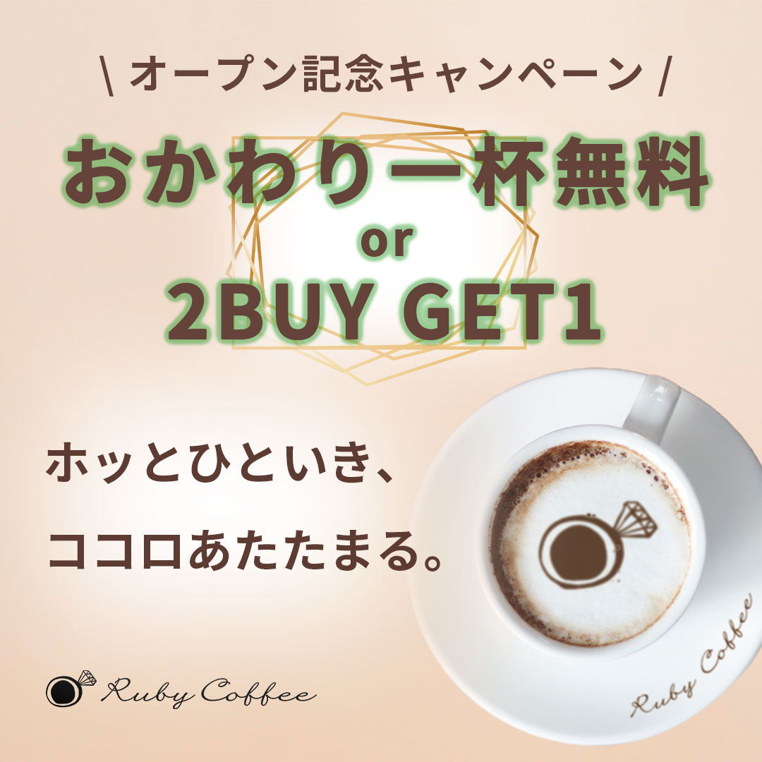 - キャンペーン情報(「おかわり一杯無料 or 2BUY GET1(一人で楽しむ方には、おかわり無料を。2人できた方には、お一人分無料を。)」※有効期限は当日限り )
