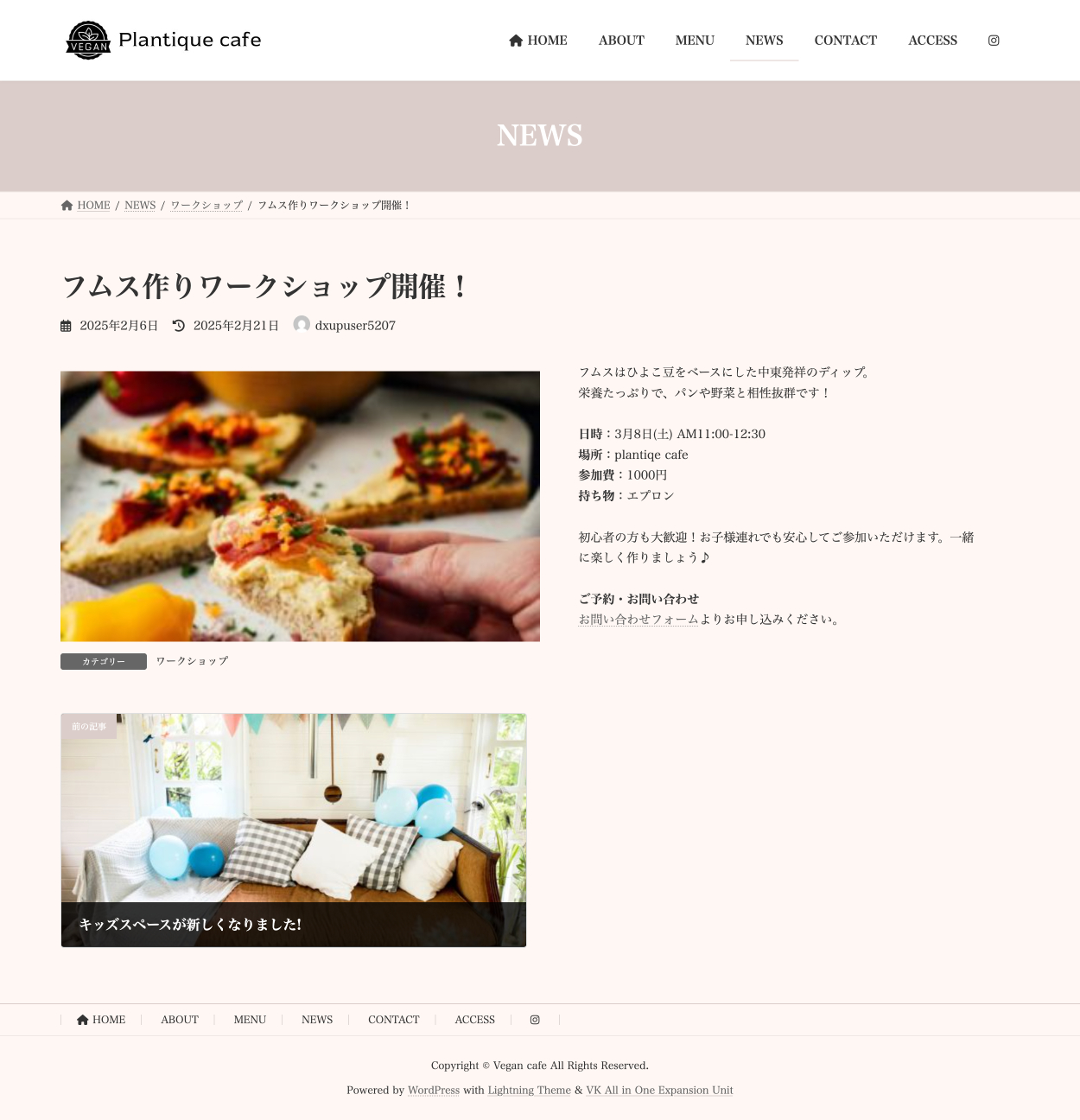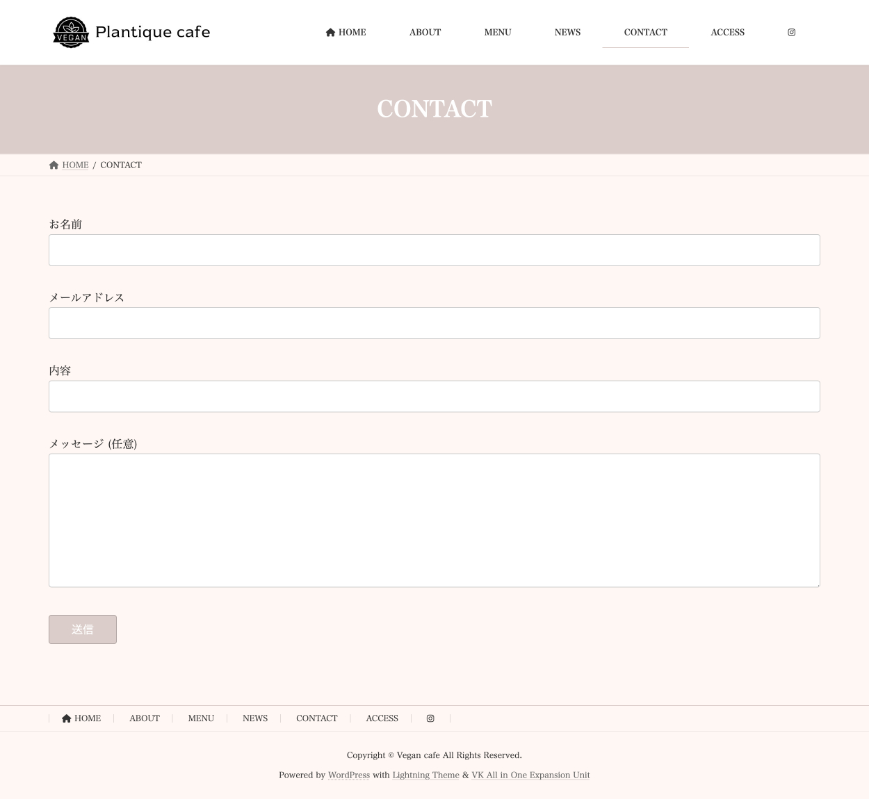 【課題】Wordpressサイト制作 架空のVeganカフェ