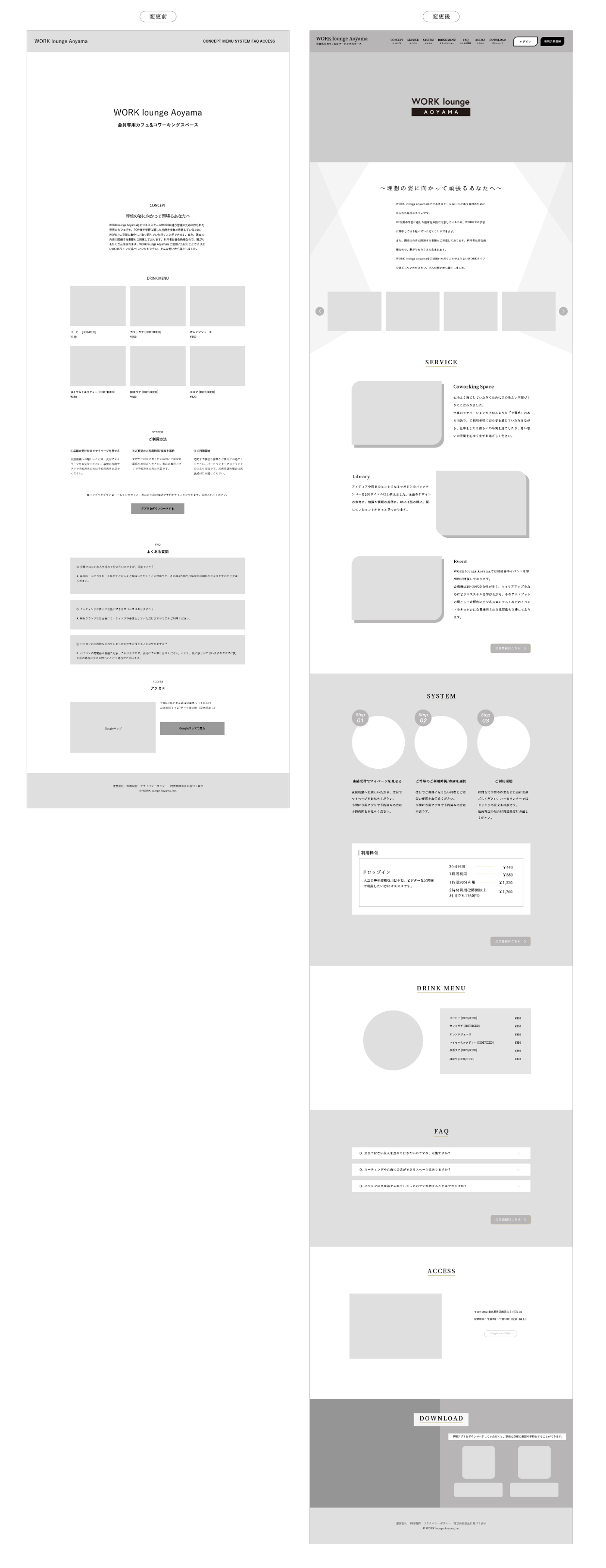 他の要素より重要度が低いので画像の枚数を1つのみに減らし、あえてシンプルにすることで他の要素を目立たせる。順番をシステムとFAQの間の下部の位置に変更。