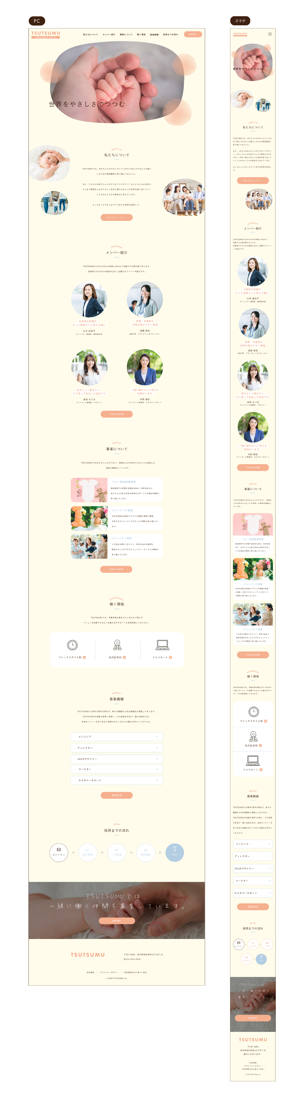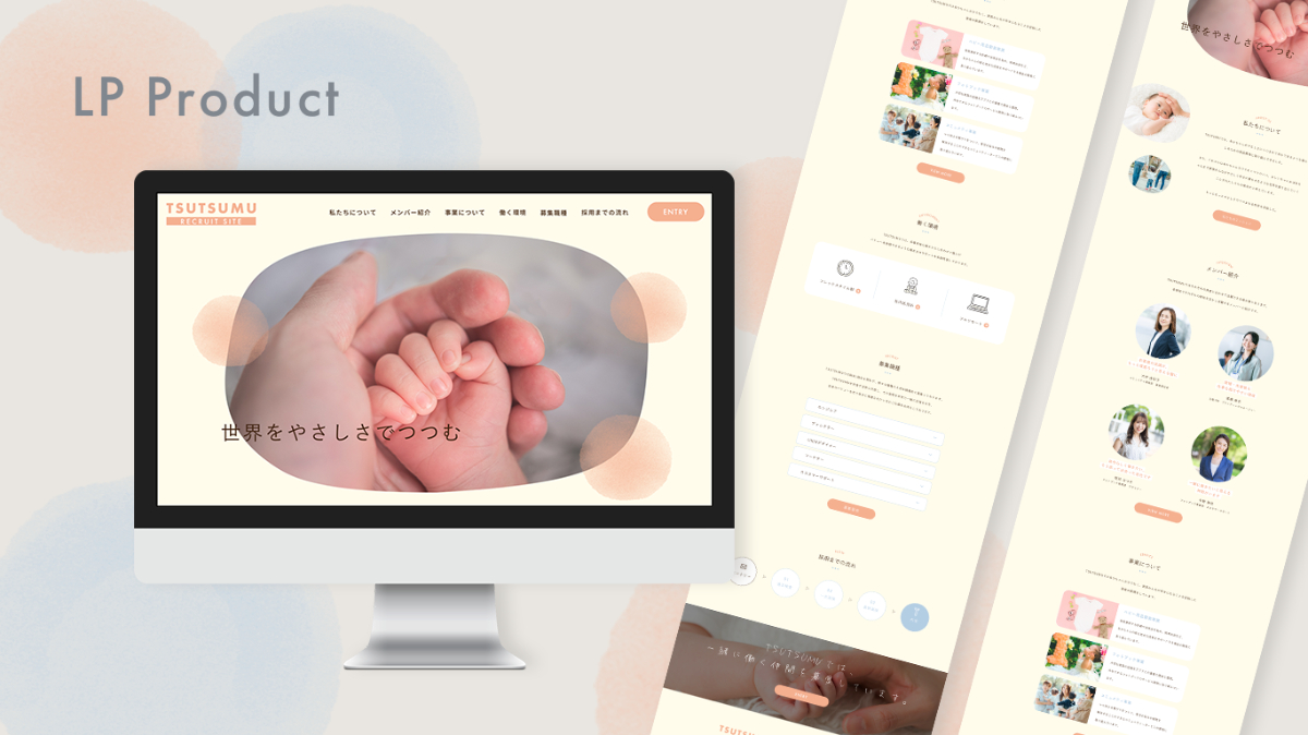 SHElikes MULTI CREATOR COURSEの課題で、ベビー用品を扱う企業のリクルートサイトのLP制作を行いました。(制作時間: デザインカンプ50時間/コーディング100時間/使用ツール: Photoshop.Atom)