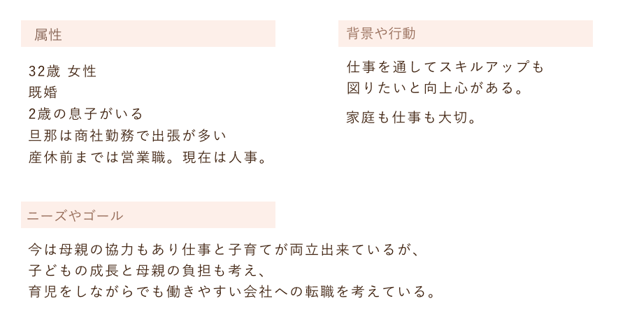 クライアントからの要件を元に、自分でペルソナを設定しました。