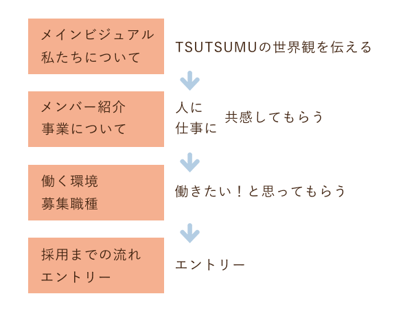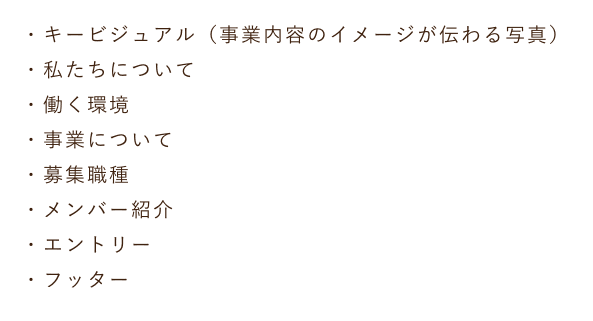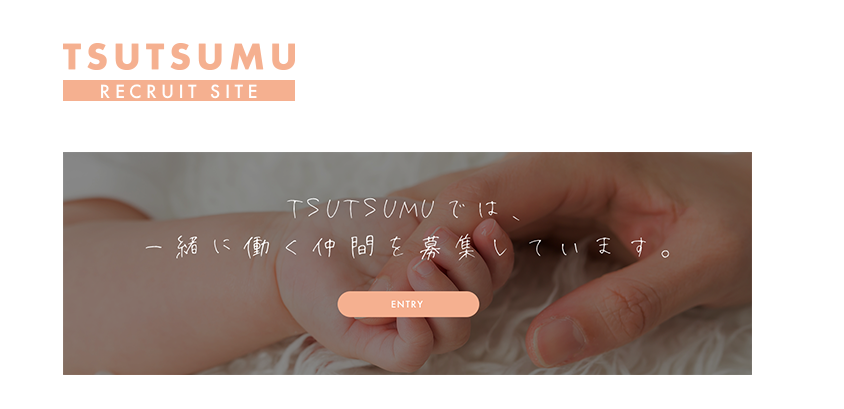 しかし、採用サイトなのでリクルート感も出せるように、ロゴ下にRECRUIT SITEと記載。CTAセクションの写真は四角のものを使い、真面目さも出せるようにした。
