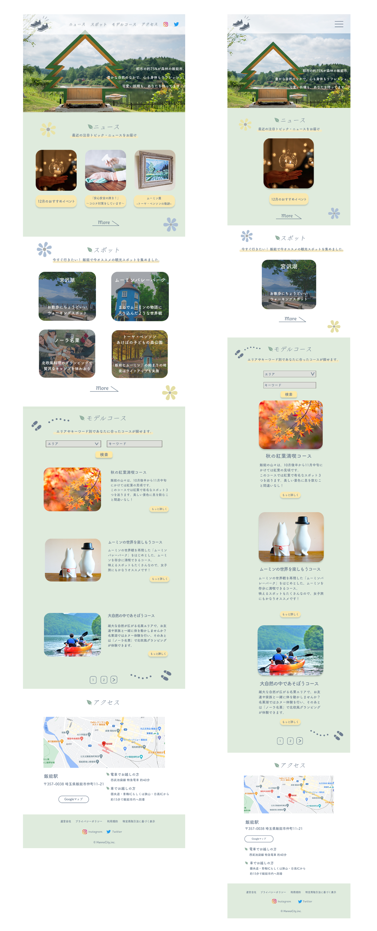 ・飯能がムーミンゆかりの地であるので、色合いは北欧らしい「彩度の低い緑・青・黄色」に。