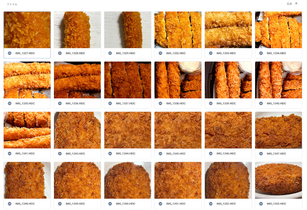 ▽撮影した揚げ物でいっぱいのフォルダ