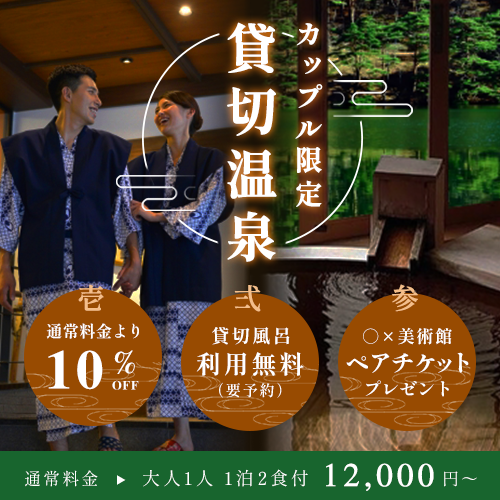 - ターゲットであるカップルの目を引けるよう、「カップル限定 貸切温泉」というメインコピーを入れました。