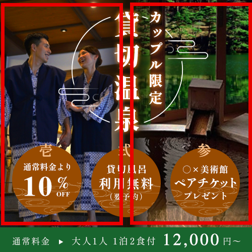 温泉のバナーであること・カップル向けであることの両方を伝える狙いで、2枚の写真を使用しました。