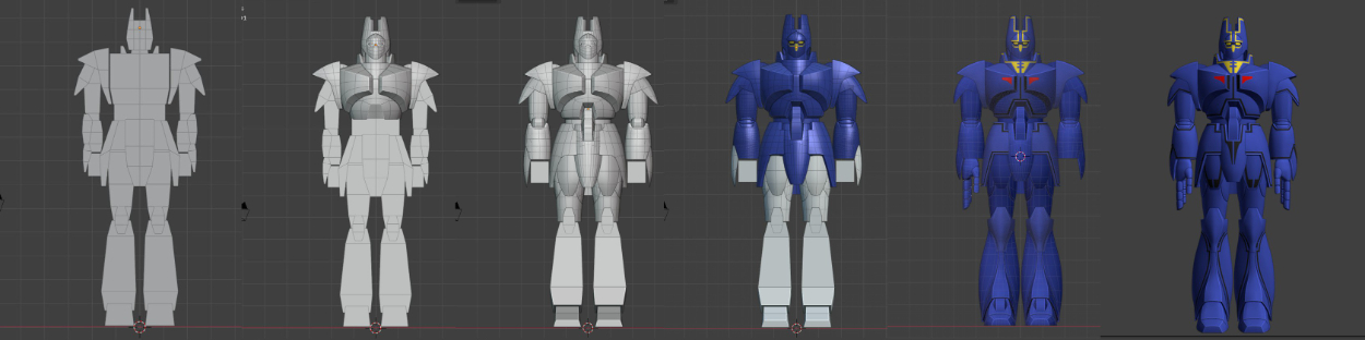人型のベース、アーマー類をBlenderで作りポーズ付け