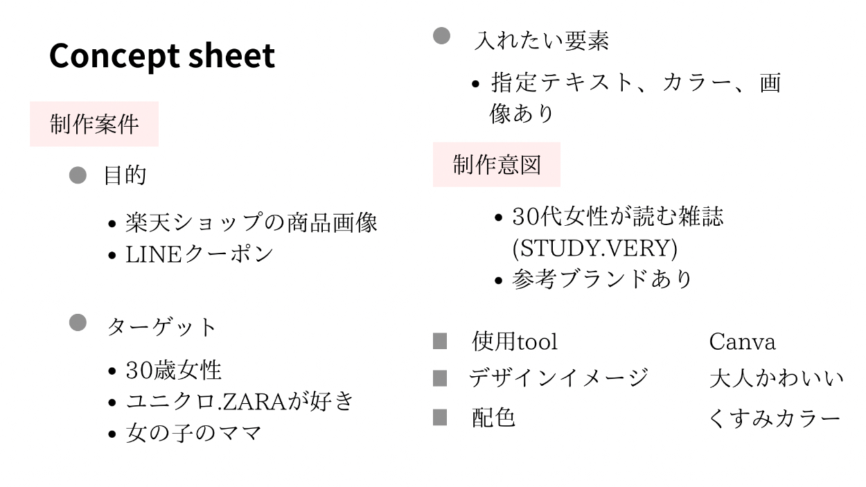 参考ブランドや雑誌、よく使用しているフォントやカラー配色など指定がありましたので制作しやすかったです。
