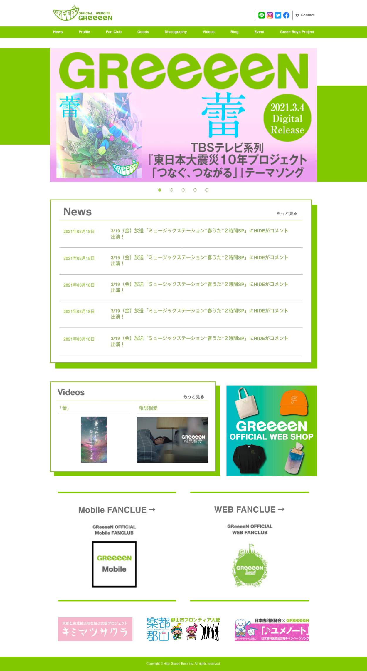 Webデザインの練習で既存で使われているWebサイト(GReeeeN公式)の新規デザインをしてみました。