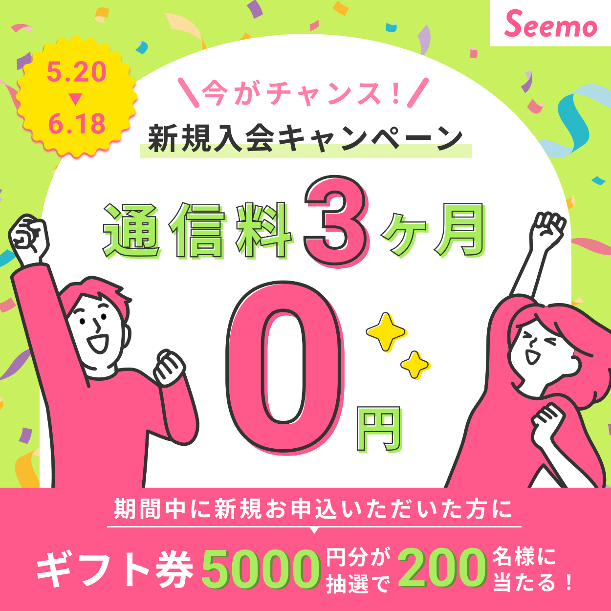 新規申込キャンペーンのお得さと楽しさがひと目で伝わり、ユーザーが「なんだか楽しそう」「詳しく見てみたい」と感じられるような、わかりやすさと賑やかさのバランスを意識しました。「通信料3ヶ月0円」の訴求を最も目立つ位置・サイズで配置し、ひと目でキャンペーンの魅力が伝わるように設計しました。