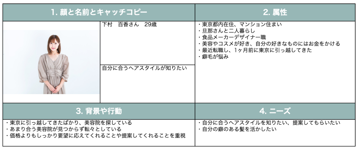 具体的には、上記のようなペルソナ設計と、ユーザーストーリーを作成しました。