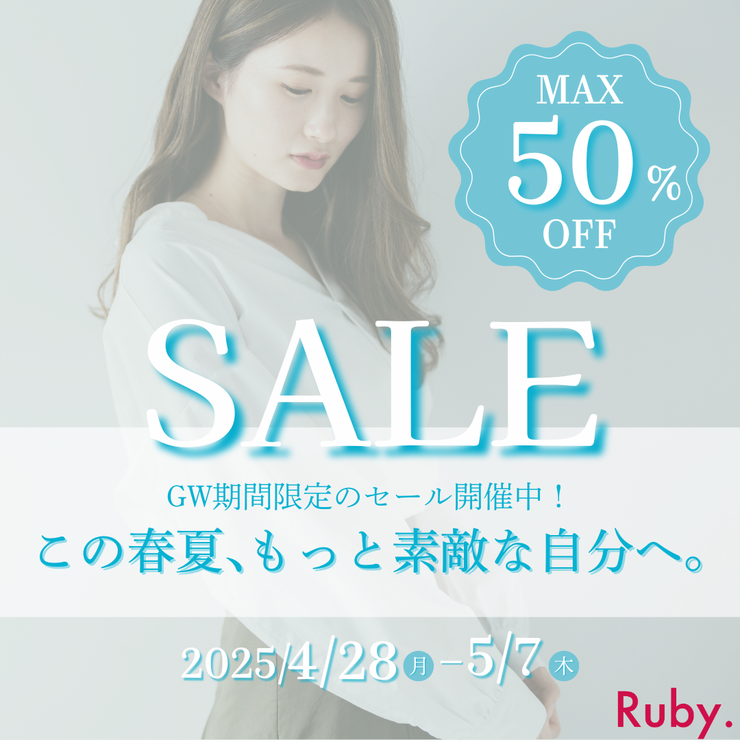 初夏を感じさせる爽やかな色味とのご希望があったので水色でまとめて制作しました。情報が伝わりやすいように絞り、シンプルなレイアウトにしました。最大50%OFFというところを強調することで興味を持っていただけるようにしました。