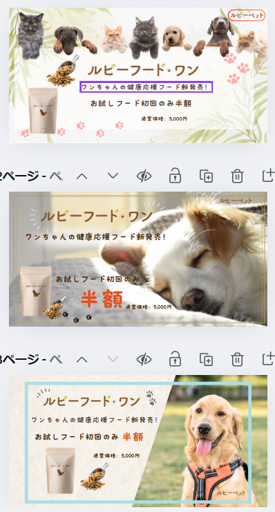 犬の写真:愛犬家の方へ向けてのバナーなので、可愛い犬の写真を大きく配置しました。