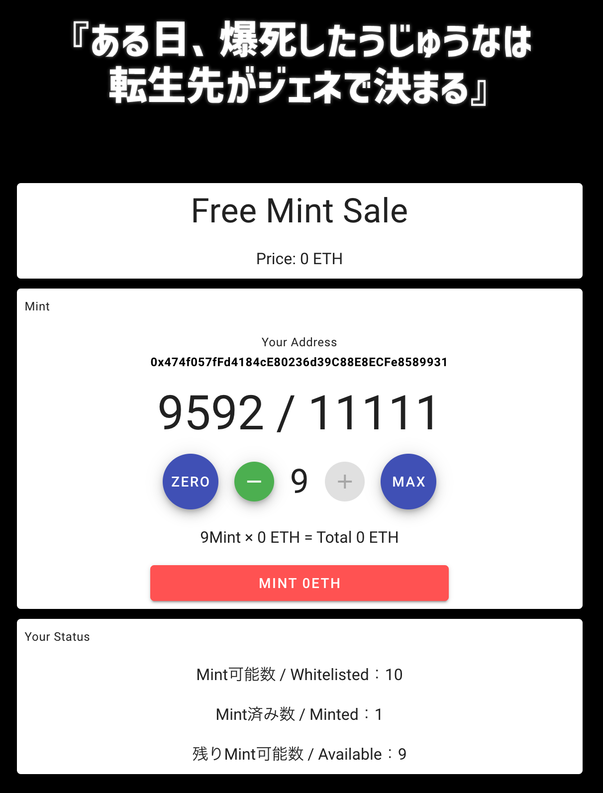- 事前に登録した複数ウォレットのどこからでもミントが可能な作りを実現。ミント済数は共通で加算される