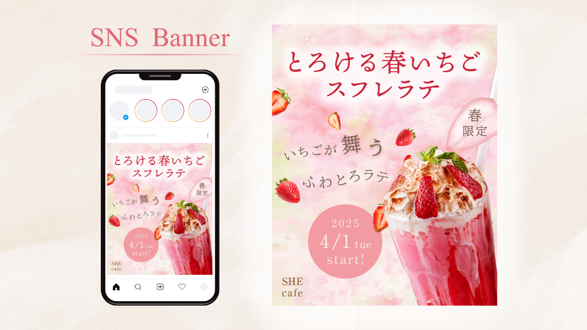 カフェの春限定ドリンクのInstagram用バナー広告