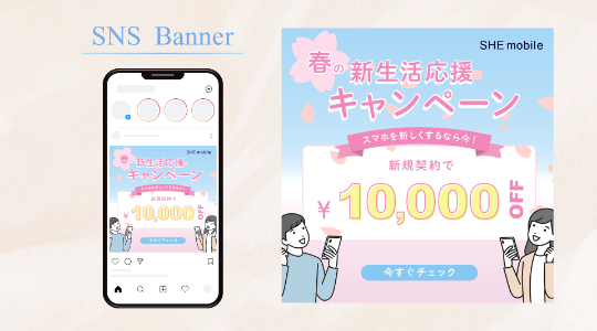 - 女性がメインのバナーなので、春の軽やかさをイメージして全体的に優しい色を使用することを意識しました。