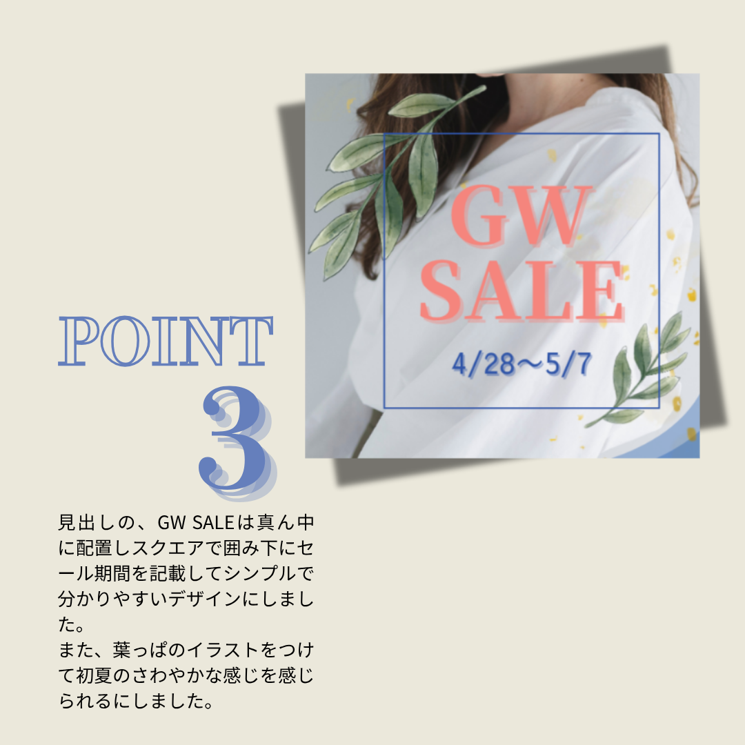 →特にゴールデンウィークセールのタイトルを目立つようにし、期間はわかりやすく