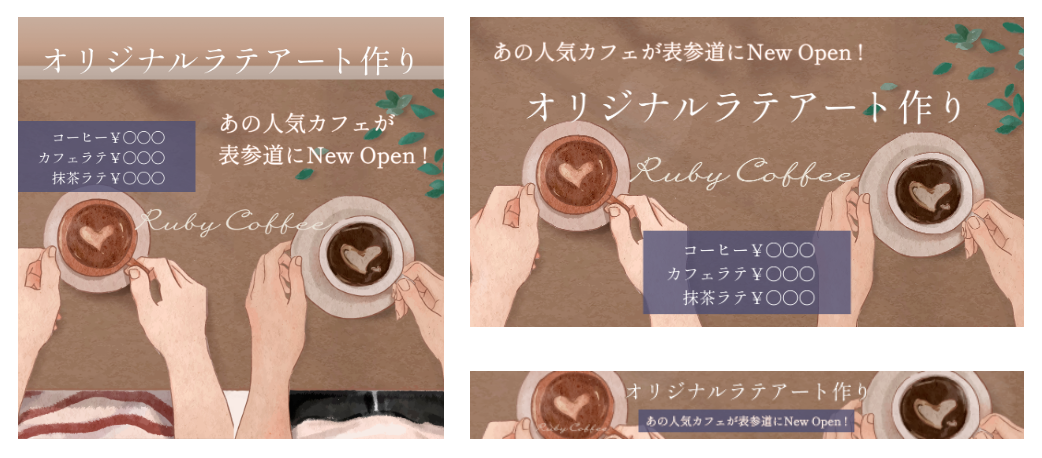 おしゃれなカフェが多いこのエリアで流行に敏感な大学生の層に選ばれるためにはどうすれば良いか、という所にフォーカスを当て、以下の2点を意識して作成いたしました。