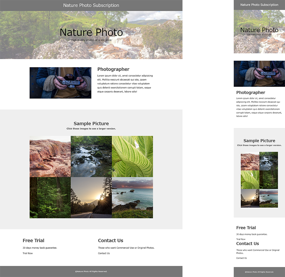 HTMLとSCSSで作成したポートフォリオサイト(LP)です。 ソースコードは、Githubに公開してあります。 【Github:URL】https://github.com/ruazltulsin/Nature_Photo