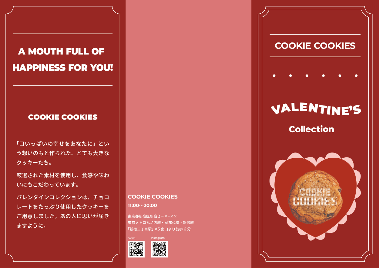 COOKIECOOKIESのバレンタイン用の3つ折りパンフレットを制作いたしました。 (自主制作)