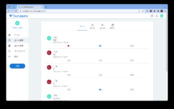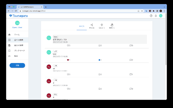 投稿に対して、いいね、ブックマーク、コメントを可能にしました。なお、ブックマークした投稿はメニューの『ブックマーク』一覧で確認できます。