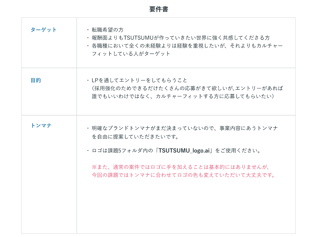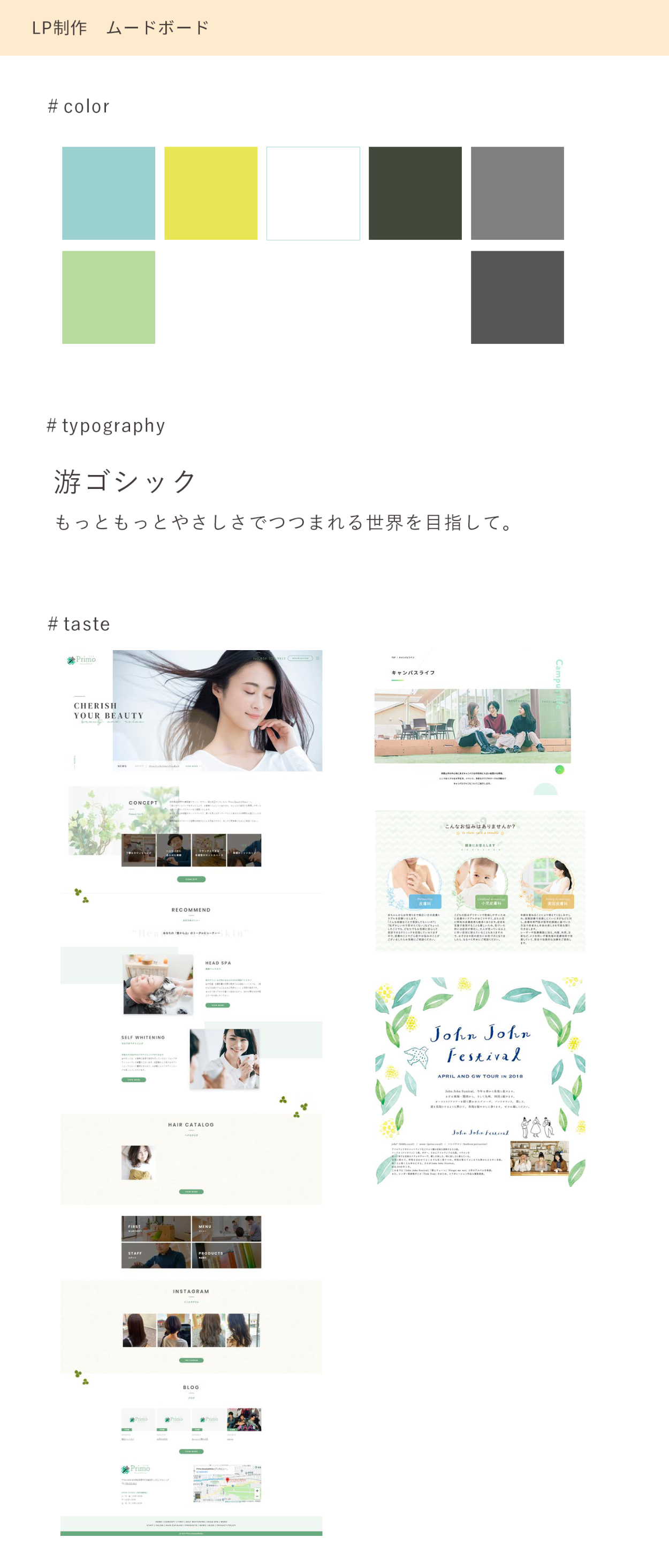 課題要件を自分なりに細部まで掘り下げたことで、LPの目的やコンセプト、全体のスタイルを確定しました。