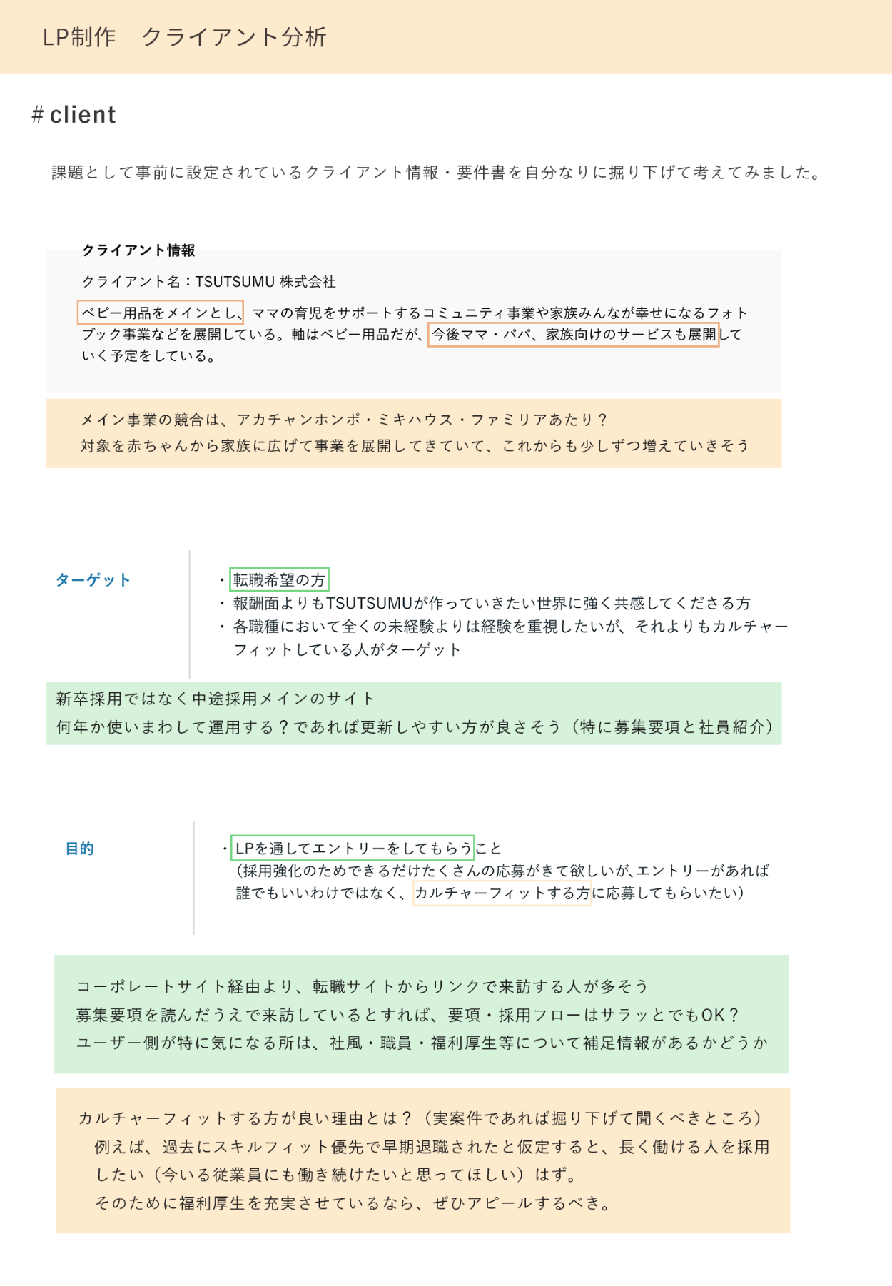 今回の課題ではクライアントの分析から始め、情報設計の部分に力を入れました。