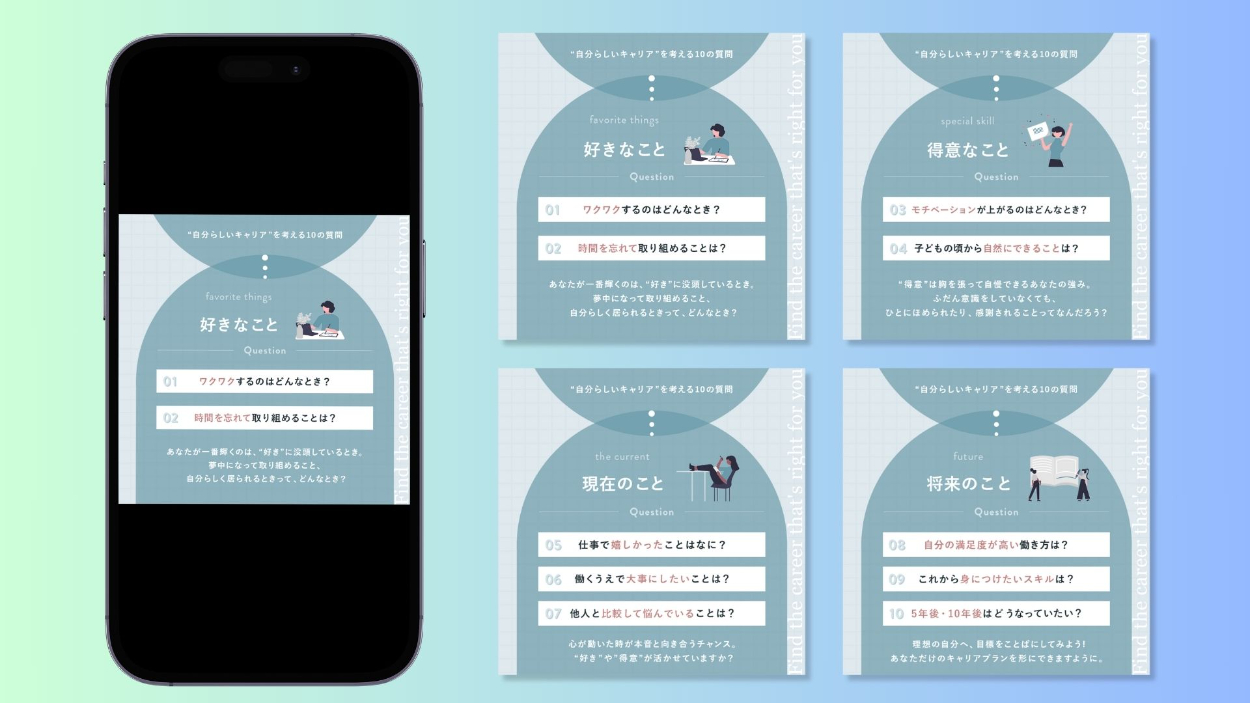 SHElikesにて実施されたSNSクリエイティブコンペにて採用されたInstagram投稿バナーです。(指定の表紙を除き、全4ページ)