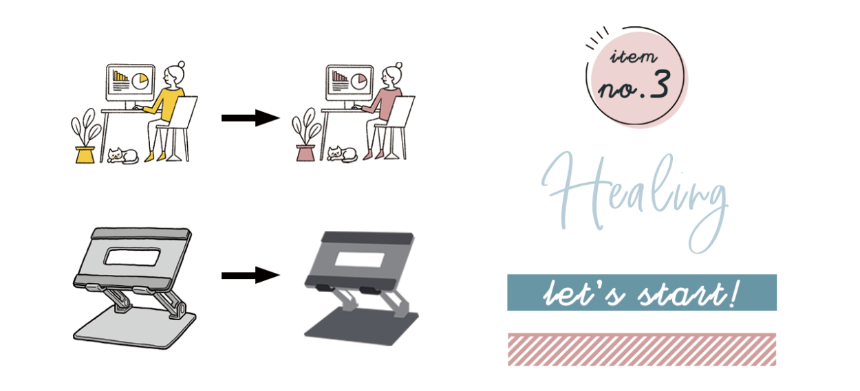 配置したイラストは、選定カラーに合わせ、テイストの合わないフリーイラスト素材は