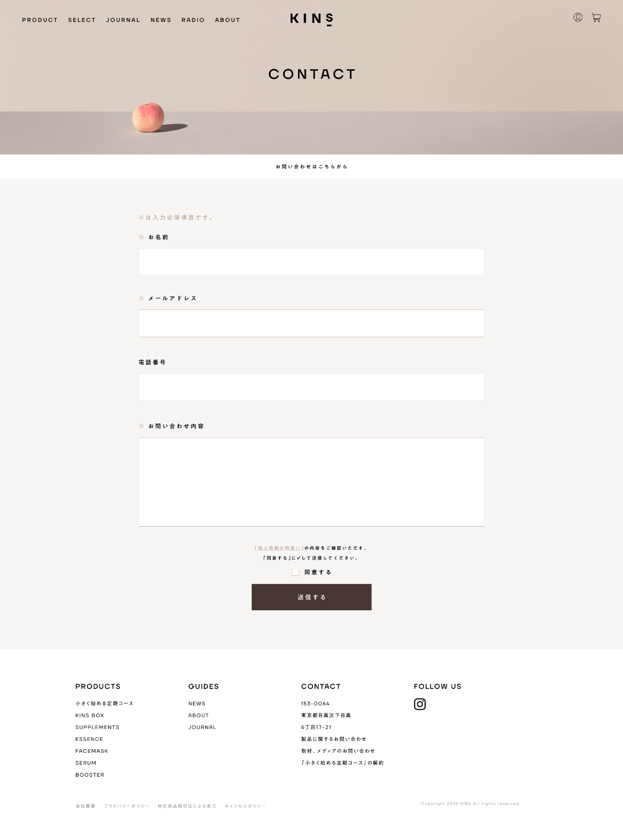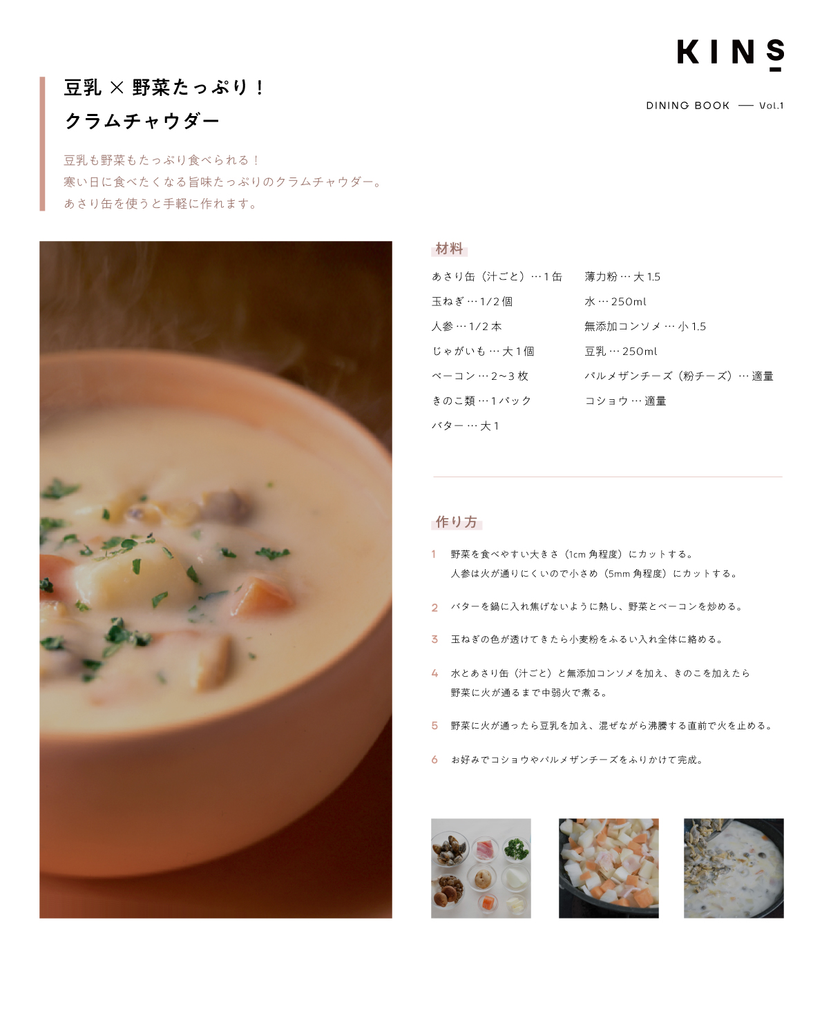 KINS リーフレットデザイン等 yuumi OVERVIEW 株式会社KINSのリーフレット、商品に同梱するレシピ、お問い合わせフォームをデザインしました。 YEAR 2021 リーフレットレシピWEB お問い合わせフォーム WEBSITE