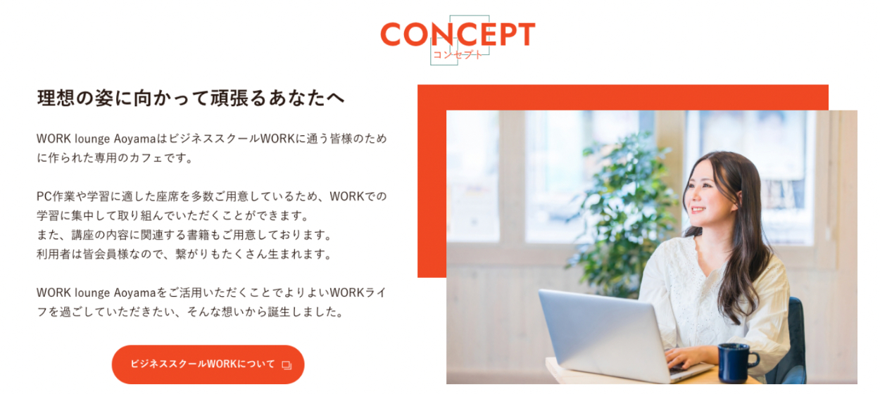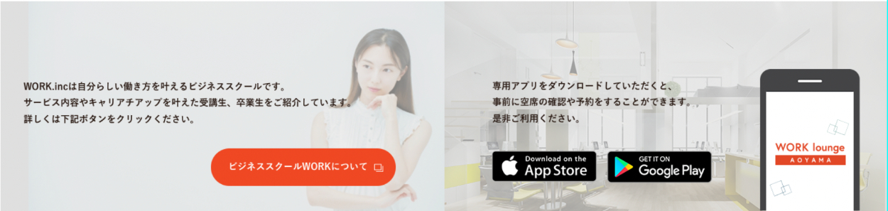 ビジネススクールWORKについて知ってもらうための専用ページにとぶボタンを設置
