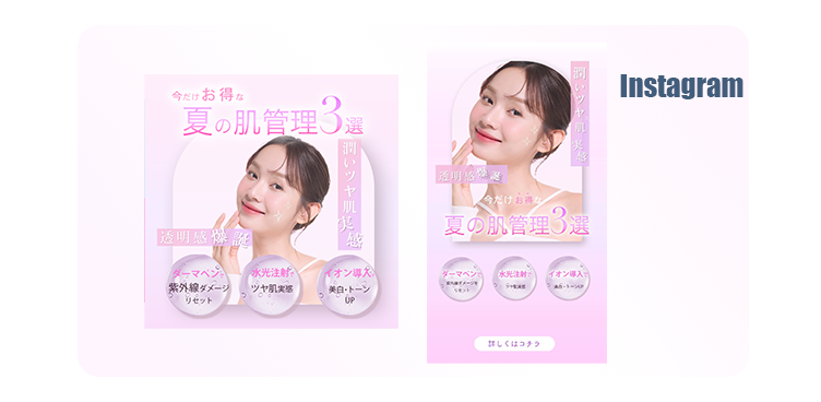 自主制作ですより 肌管理のInstagramのストーリーを作成しました。 ターゲットは20代前半の女性です。