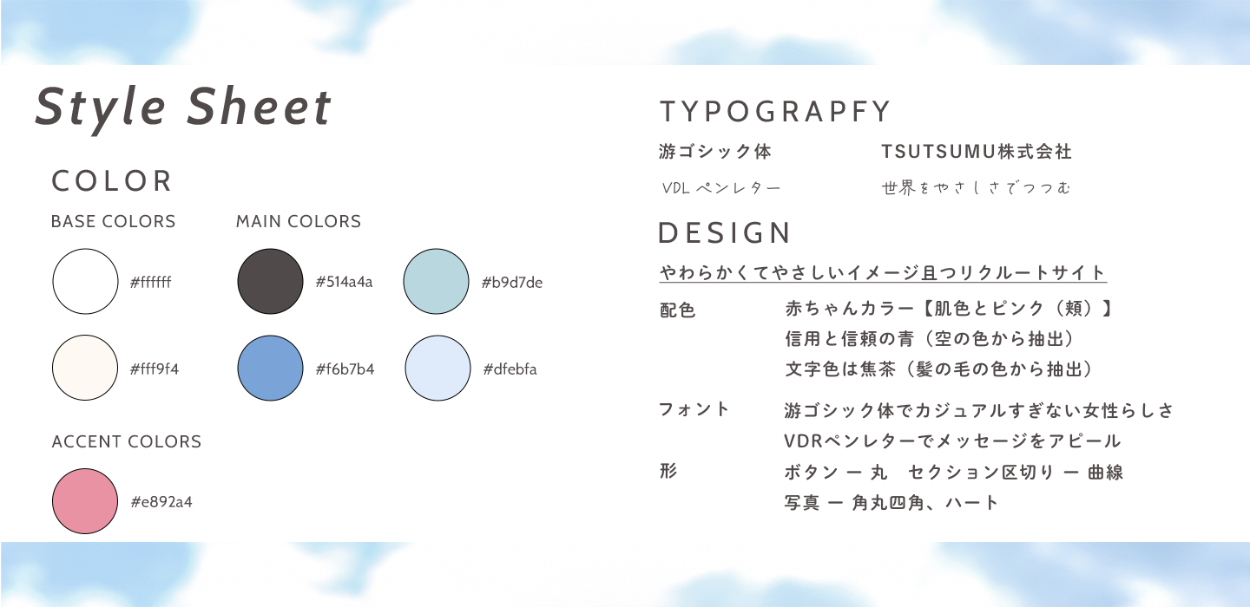ペルソナとユーザーストーリー、スタイルシートを作成することでルール化をしました。いきなりデザインから考えるのではなく、しっかりルールを決めてから取り掛かることが時間短縮になると感じました。