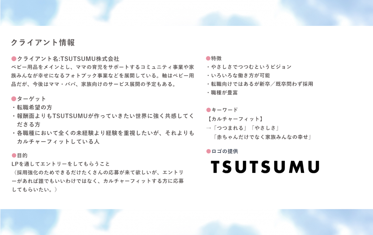 株式会社TSUTSUMU様の採用サイト制作の依頼です。